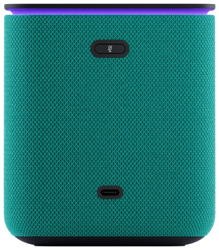 Приятный корпус с тканевой отделкой, доступный в разных расцветках текстильной части, не только придает колонке стильный внешний вид, но и создает приятные тактильные ощущения. Он также защищает динамики и слегка смягчает звук, а встроенный экран эффектно светится прямо на текстильной стороне.